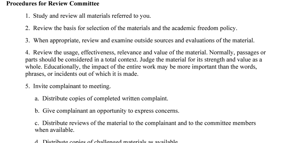 Moccio urged anyone in the audience who may be wondering about the procedures for material selection and how to lodge a complaint to review the district's policies. According to policy 6163, materials for school library media centers are to be made by “selected certified staff in consultation with administration, faculty, and sometimes students and parents.” Policy 6161 addresses the procedure for lodging complaints, which you can see in the screenshots below or explore further here. The key takeaway is there is a process in place for challenging potentially controversial materials, and it does not involve voting against already purchased materials.